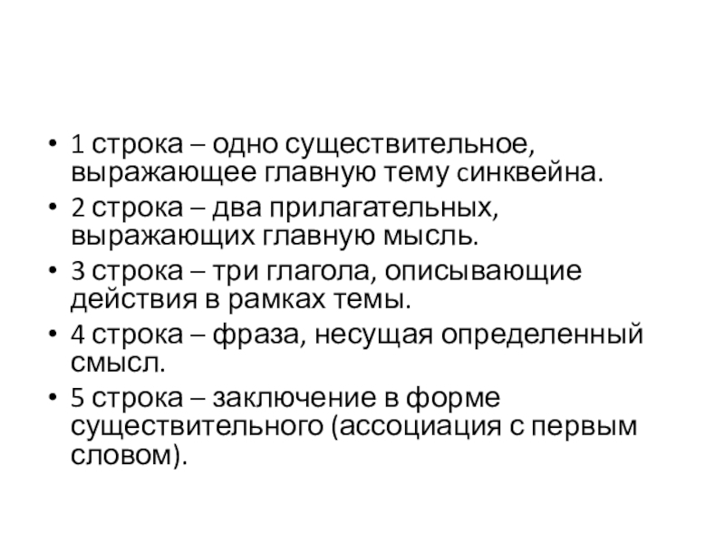 5 строка – заключение в форме существительного (ассоциация с первым словом).
