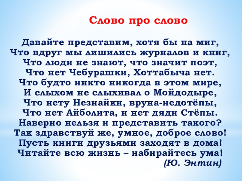 Это сайт презентаций, где можно хранить и обмениваться своими презентациями, докладами, проектами, шаблонами в формате PowerPoint с другими пользователями. Мы помогаем школьникам, студентам, учителям, преподавателям хранить и обмениваться учебными материалами.