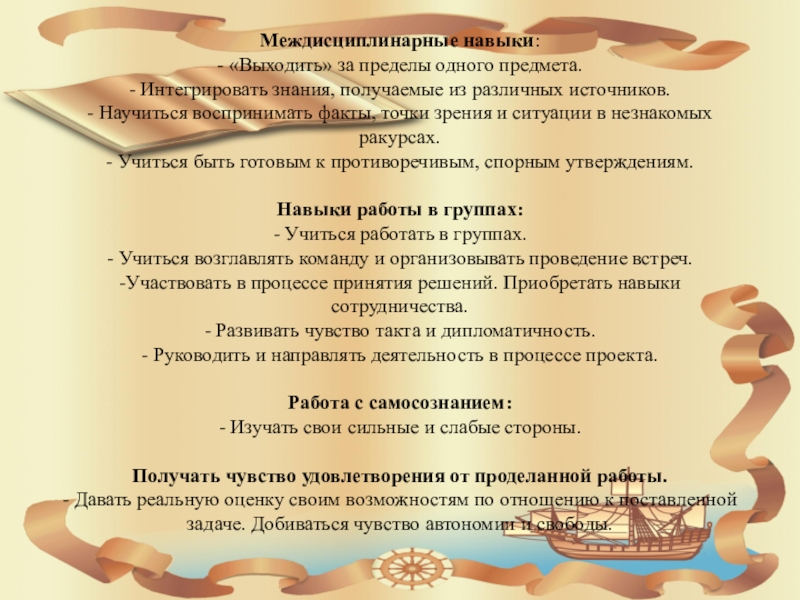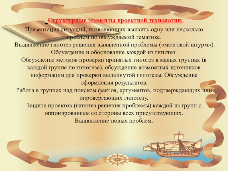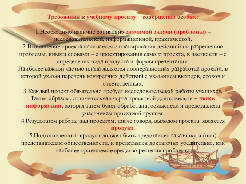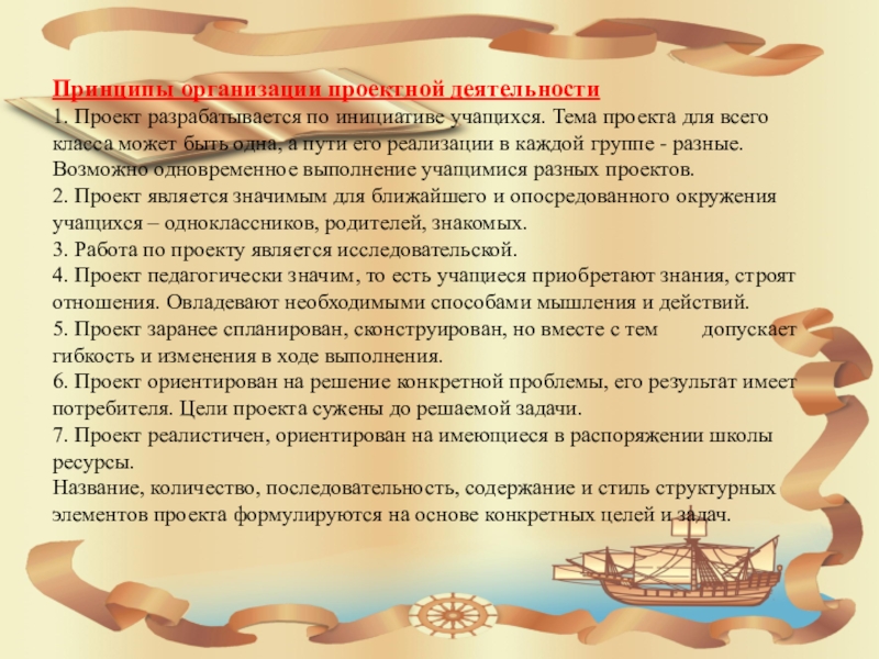 4. Проект педагогически значим, то есть учащиеся приобретают знания, строят отношения. Овладевают необходимыми способами мышления и действий.