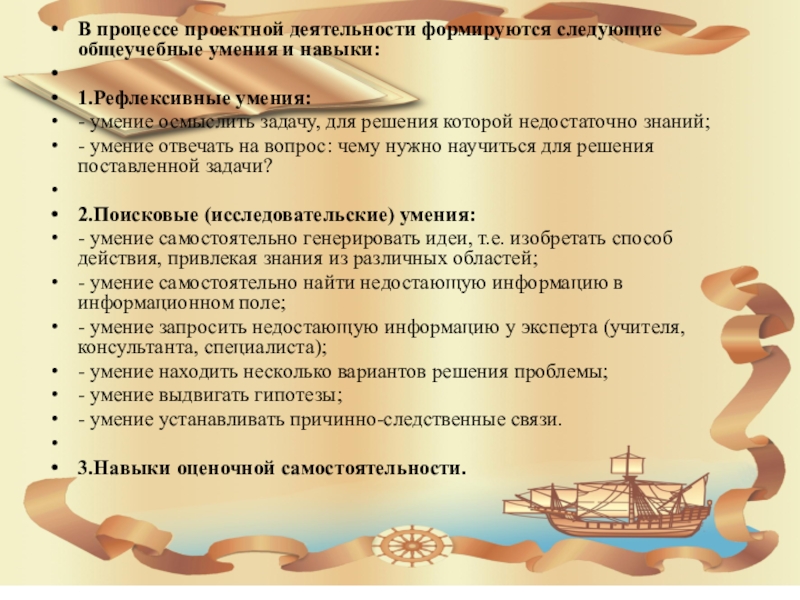 Слайд 33В процессе проектной деятельности формируются следующие общеучебные умения и навыки: