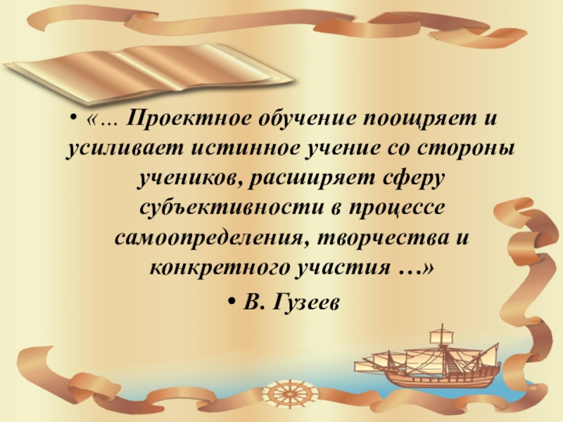 Слайд 39«… Проектное обучение поощряет и усиливает истинное учение со стороны учеников,