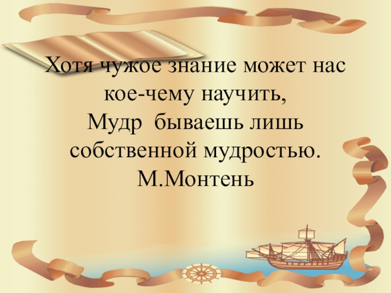 Слайд 2Хотя чужое знание может нас кое-чему научить,