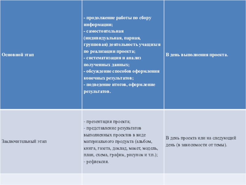 Таким образом, отличительная черта проектной деятельности – поиск информации, которая затем будет обработана, осмыслена и представлена участникам проектной группы.