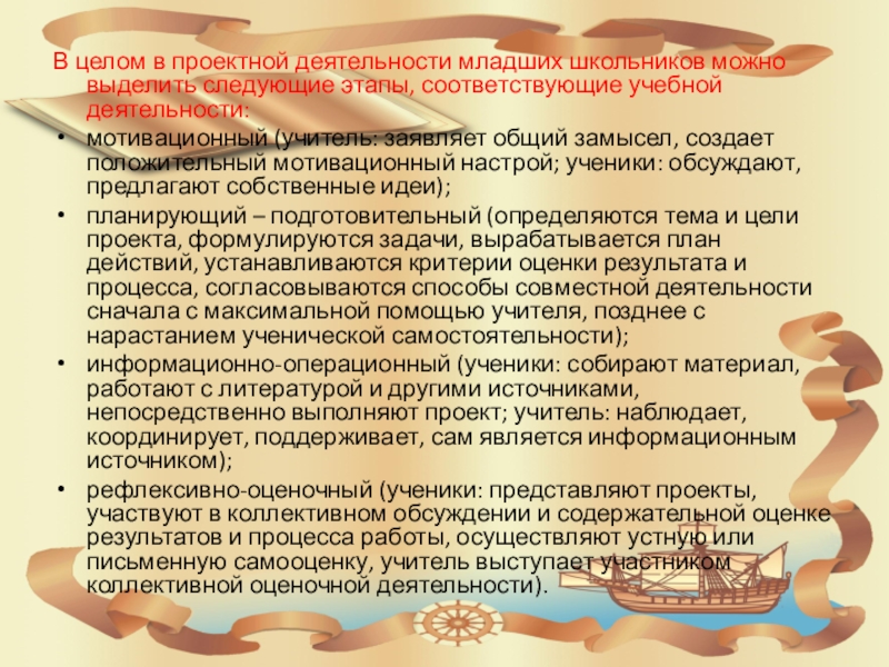 Слайд 26В целом в проектной деятельности младших школьников можно выделить следующие этапы,