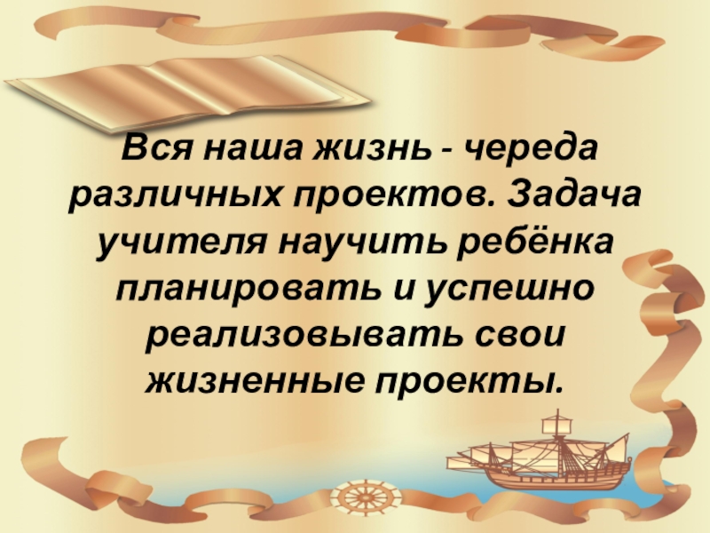 Вся наша жизнь - череда различных проектов. Задача учителя научить