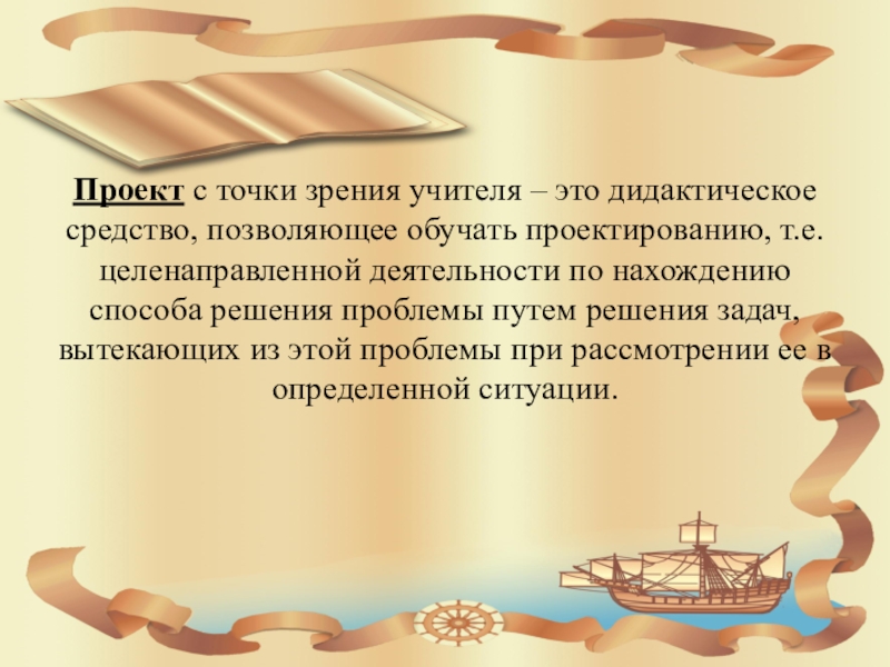 Слайд 6Проект с точки зрения учителя – это дидактическое средство, позволяющее обучать