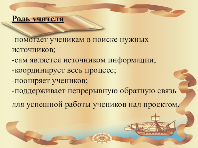 -поддерживает непрерывную обратную связь для успешной работы учеников над проектом.