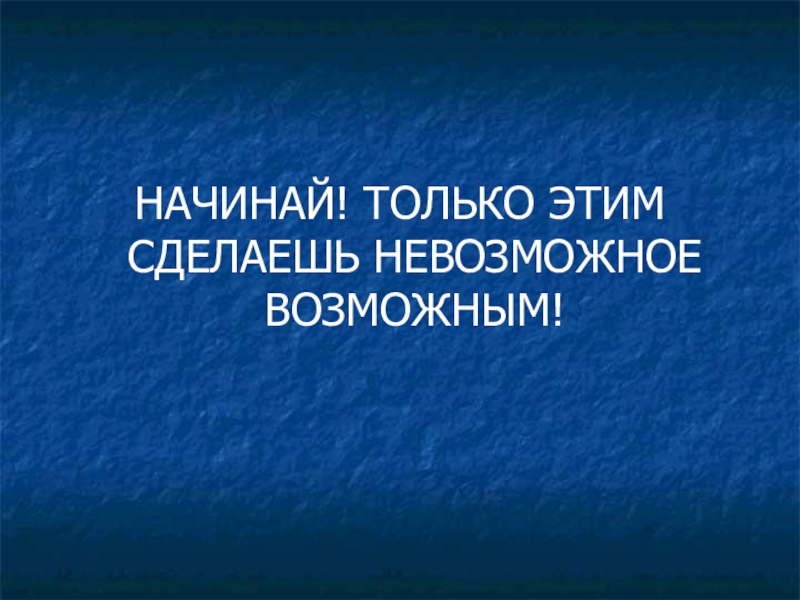 Слайд 8НАЧИНАЙ! ТОЛЬКО ЭТИМ СДЕЛАЕШЬ НЕВОЗМОЖНОЕ ВОЗМОЖНЫМ!