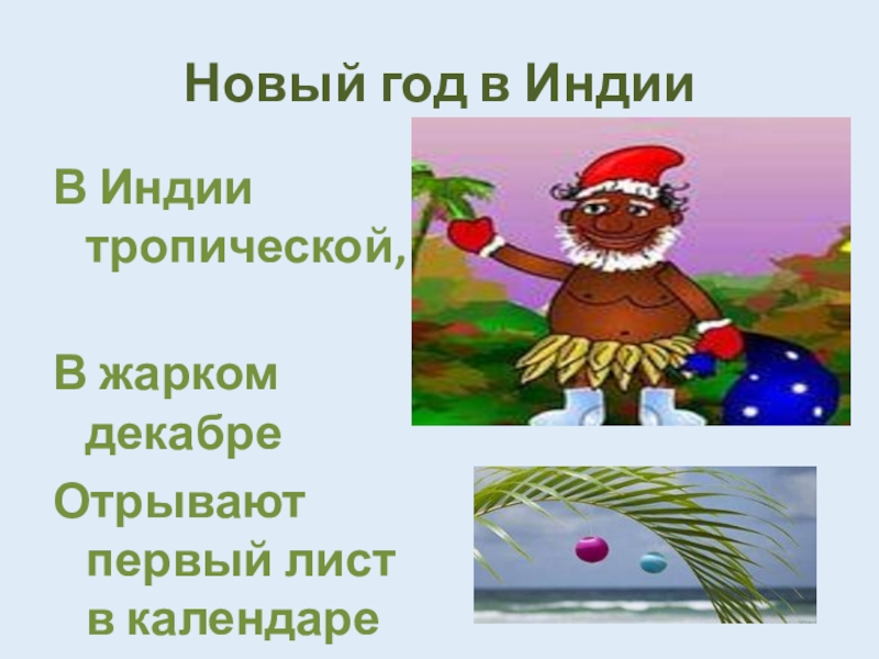 Новый год в ИндииВ Индии тропической, 	В жарком декабре	Отрывают первый лист в календаре