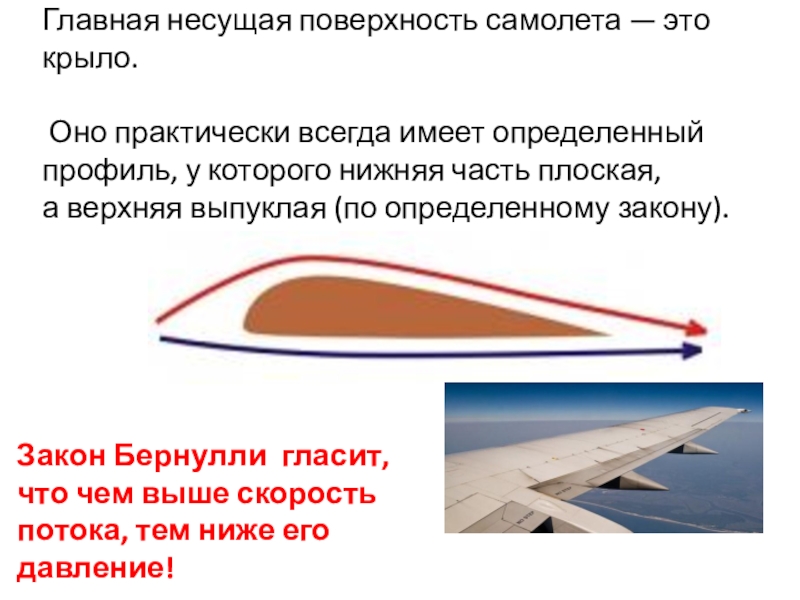 Возникает сила, которая старается «выдавить» крыло, а значит и весь летательный аппарат вверх.