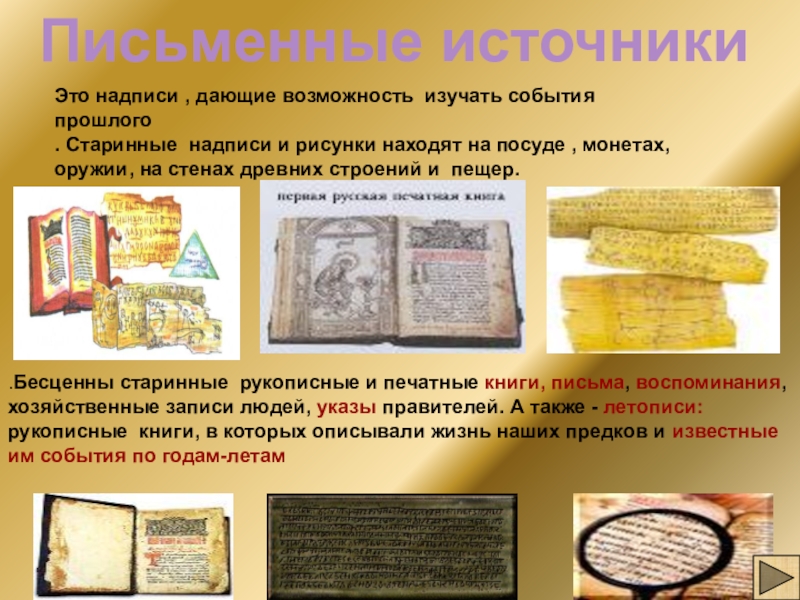 . Старинные надписи и рисунки находят на посуде , монетах, оружии, на стенах древних строений и пещер.