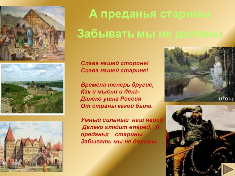 О прошлом народа можно узнать из устных преданий, былин, сказок, песен, поговорок.