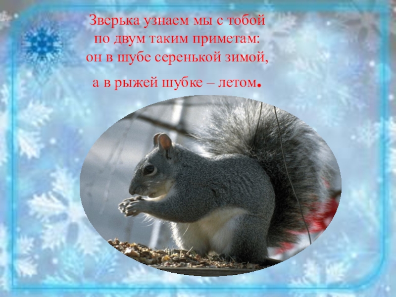 Слайд 6Зверька узнаем мы с тобой по двум таким приметам: он в шубе серенькой