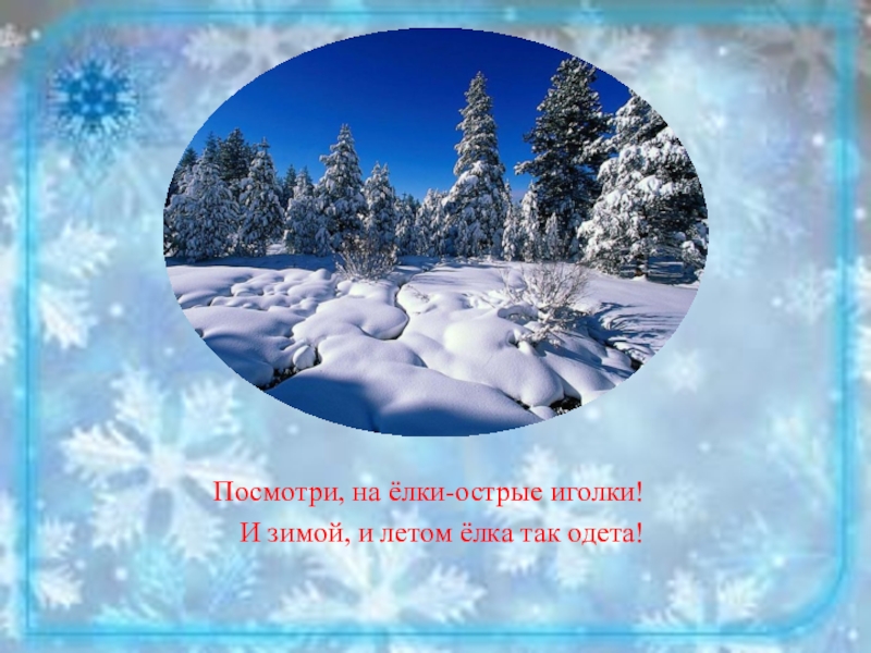 Посмотри, на ёлки-острые иголки!И зимой, и летом ёлка так одета!