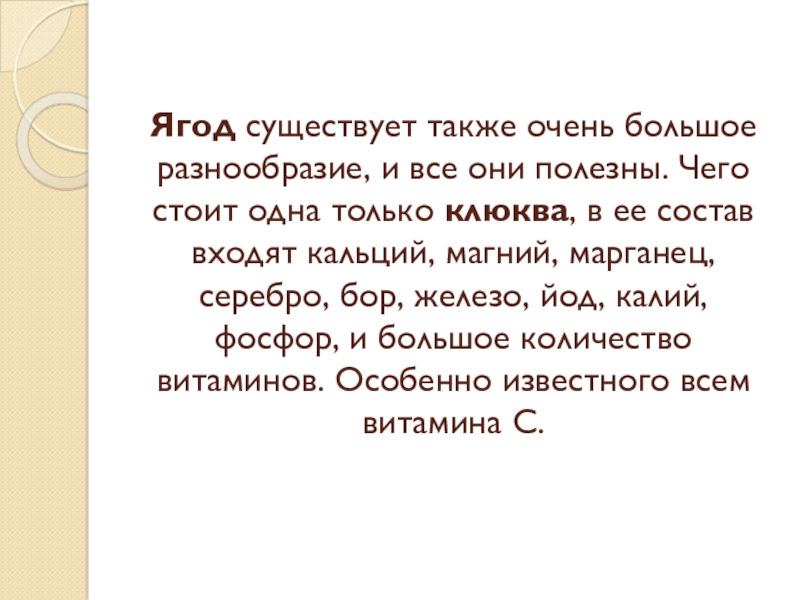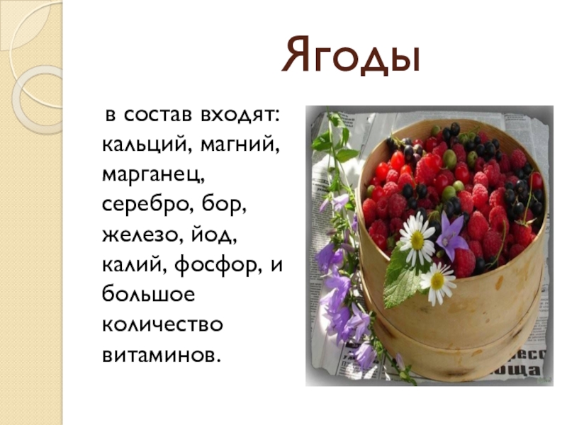 Слайд 6Ягод существует также очень большое разнообразие, и все они полезны. Чего