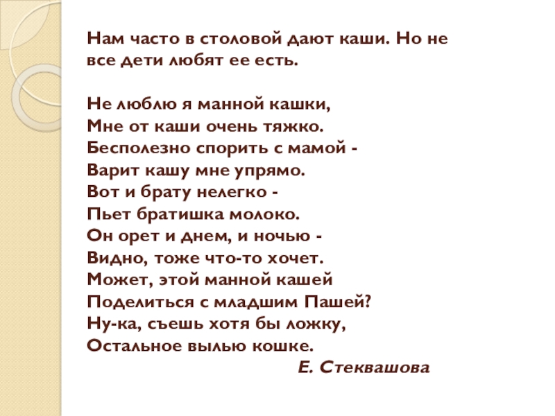 Слайд 2Нам часто в столовой дают каши. Но не все дети любят
