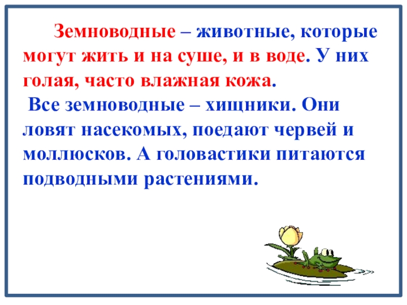 Земноводные – животные, которые могут жить и на суше, и в воде.