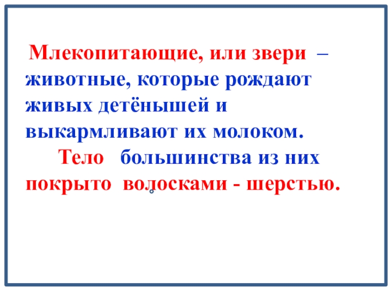 Млекопитающие, или звери –  животные, которые рождают живых детёнышей и выкармливают