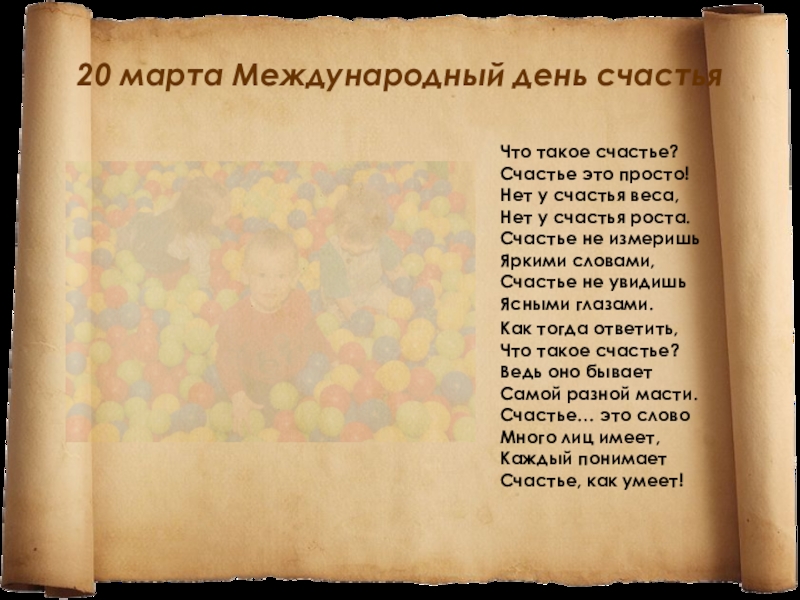 20 марта Международный день счастья   Что такое счастье? Счастье это просто! Нет у счастья веса,