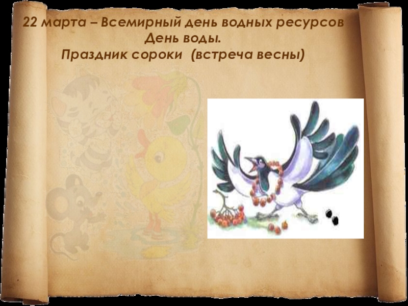 Слайд 622 марта – Всемирный день водных ресурсов День воды. Праздник сороки (встреча