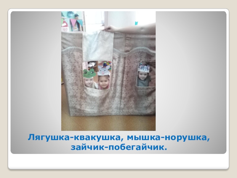 Слайд 16Лягушка-квакушка, мышка-норушка, зайчик-побегайчик.