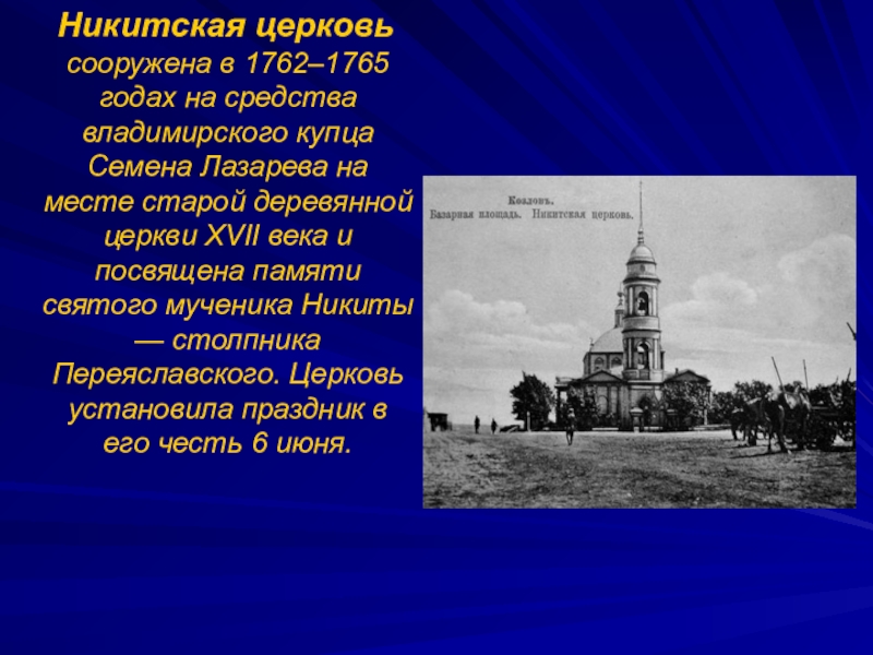 Слайд 39 Никитская церковь сооружена в 1762–1765 годах на средства владимирского