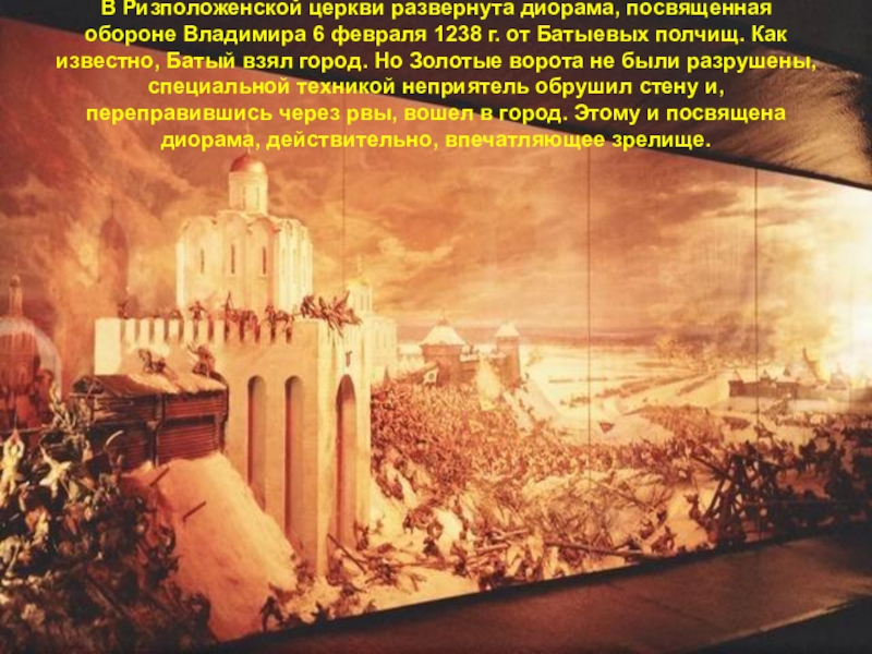 Слайд 32В Ризположенской церкви развернута диорама, посвященная обороне Владимира 6 февраля 1238