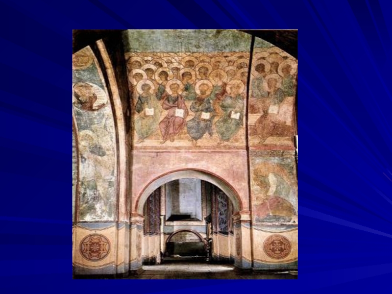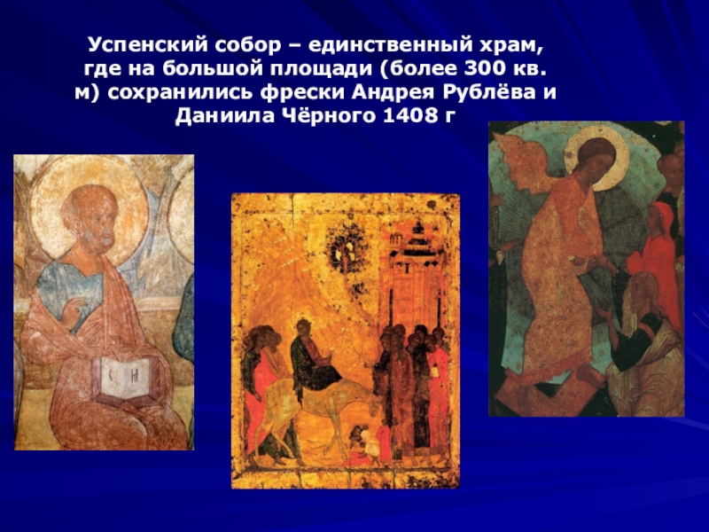 кв. м) сохранились фрески Андрея Рублёва и Даниила Чёрного 1408 г