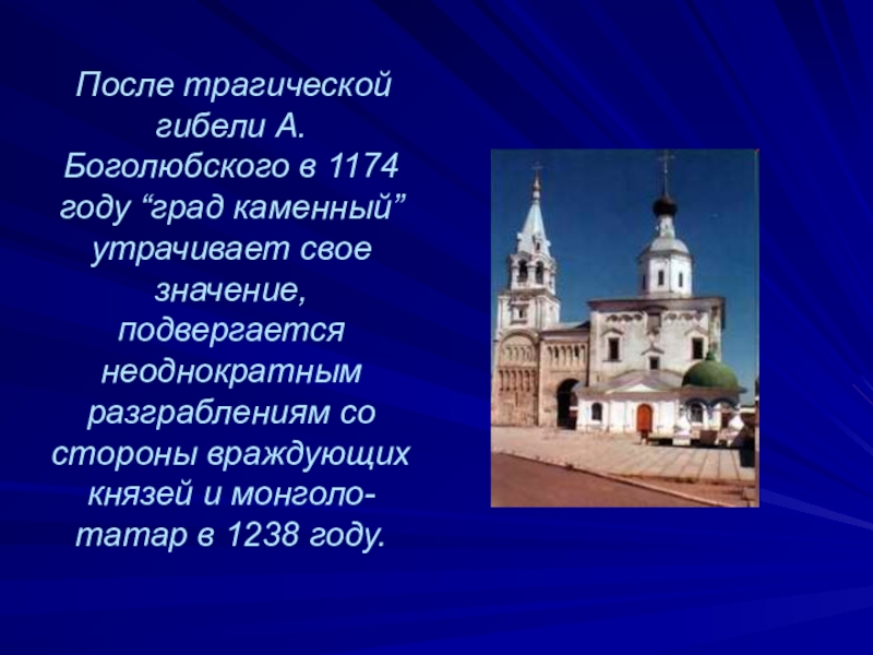 Слайд 54 После трагической гибели А. Боголюбского в 1174 году “град