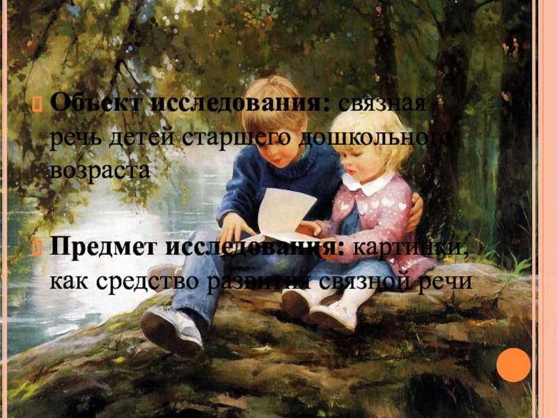 Объект исследования: связная речь детей старшего дошкольного возрастаПредмет исследования: картинки, как средство развития связной речи