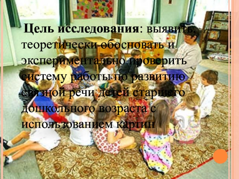 Цель исследования: выявить, теоретически обосновать и экспериментально проверить систему работы по развитию связной речи детей