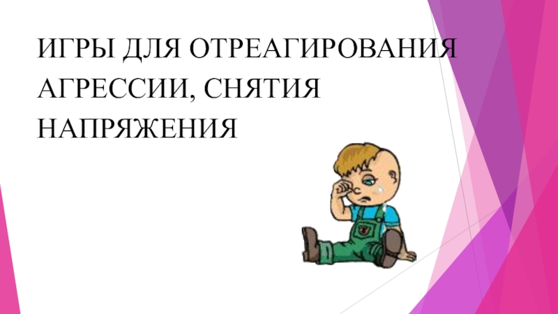 Слайд 14ИГРЫ ДЛЯ ОТРЕАГИРОВАНИЯ АГРЕССИИ, СНЯТИЯ НАПРЯЖЕНИЯ