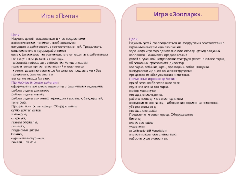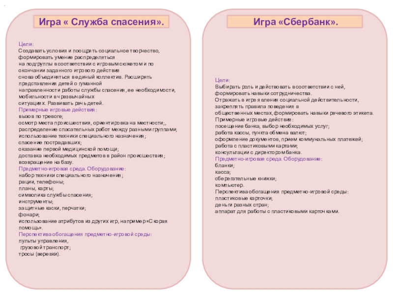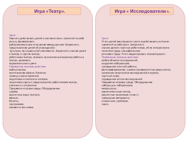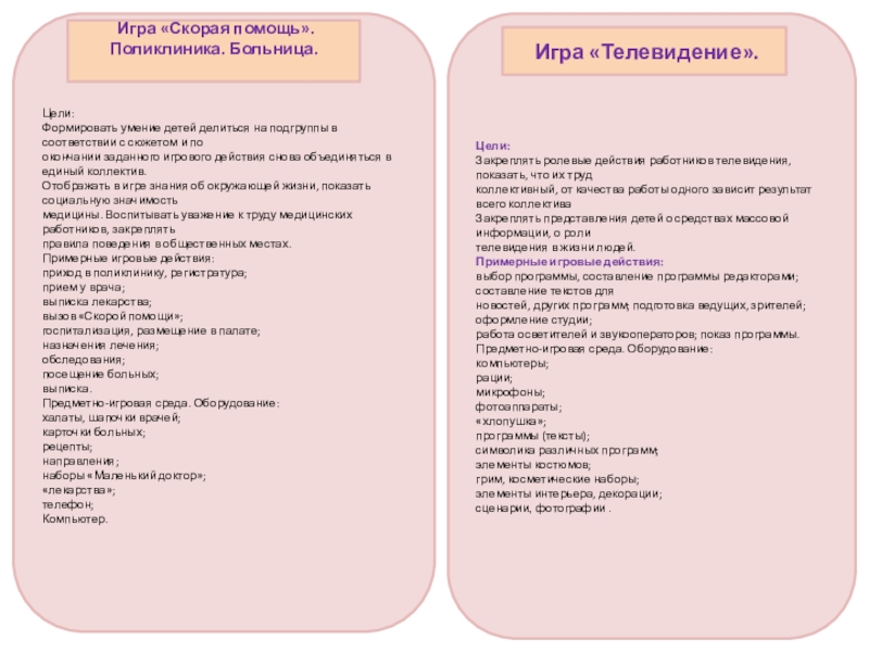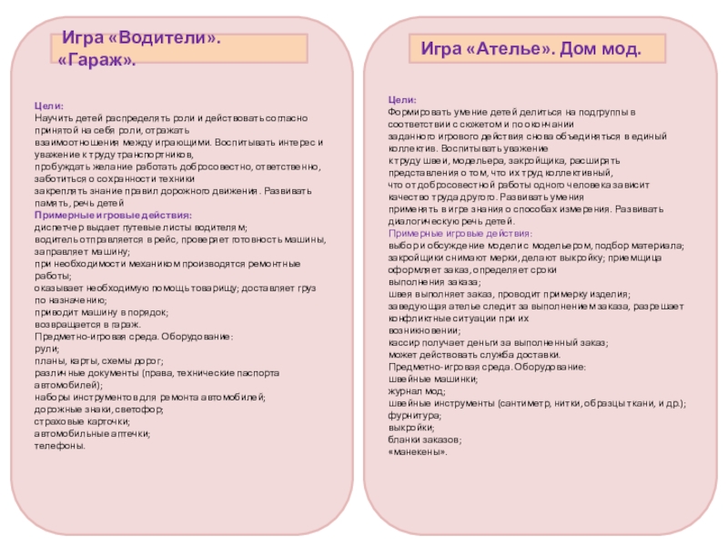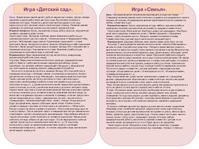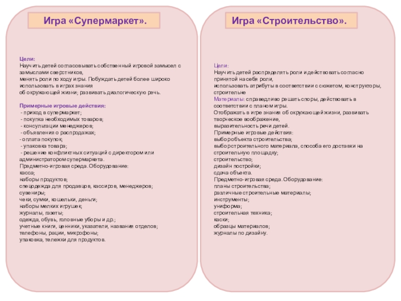 Также педагог может объединять игры, близкие по тематике, создавая возможность длительных коллективных игр, например: «Семья» и «Школа».