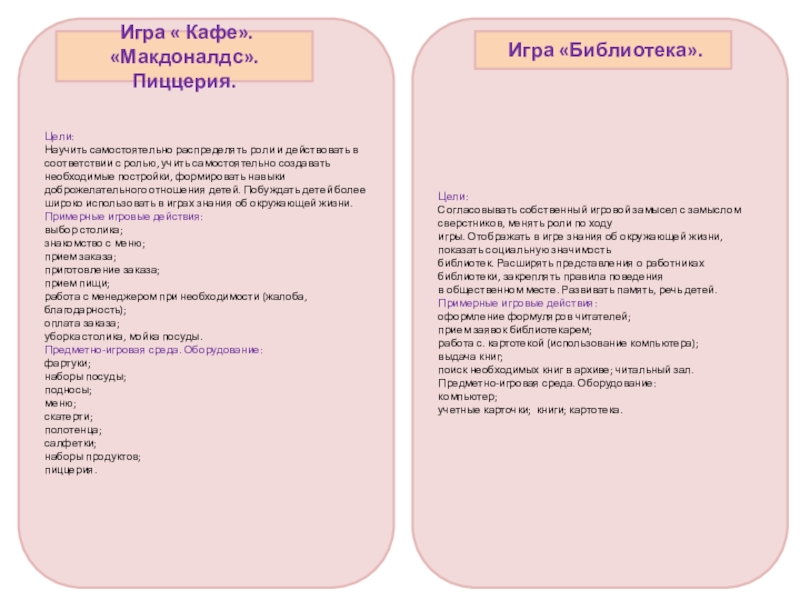 Игра « Кафе». «Макдоналдс». Пиццерия.