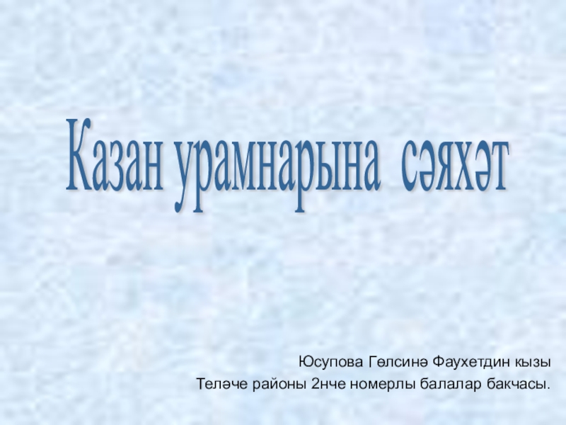 Казан урамнарына сәяхәтЮсупова Гөлсинә Фаухетдин кызыТеләче районы 2нче номерлы балалар бакчасы.