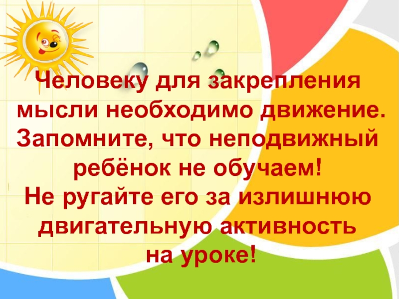 И. П. Павлов считал, что любая мысль заканчивается движением. Именно поэтому многим людям легче мыслить при повторяющихся физических действиях, например ходьбе, покачивании ногой, постукивании карандашом по столу и др. На двигательной активности построены все нейропсихологические коррекционно-развивающие и формирующие программы!
