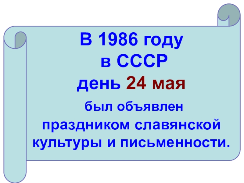 В 1986 году в СССРдень 24 мая был объявленпраздником славянскойкультуры и письменности.