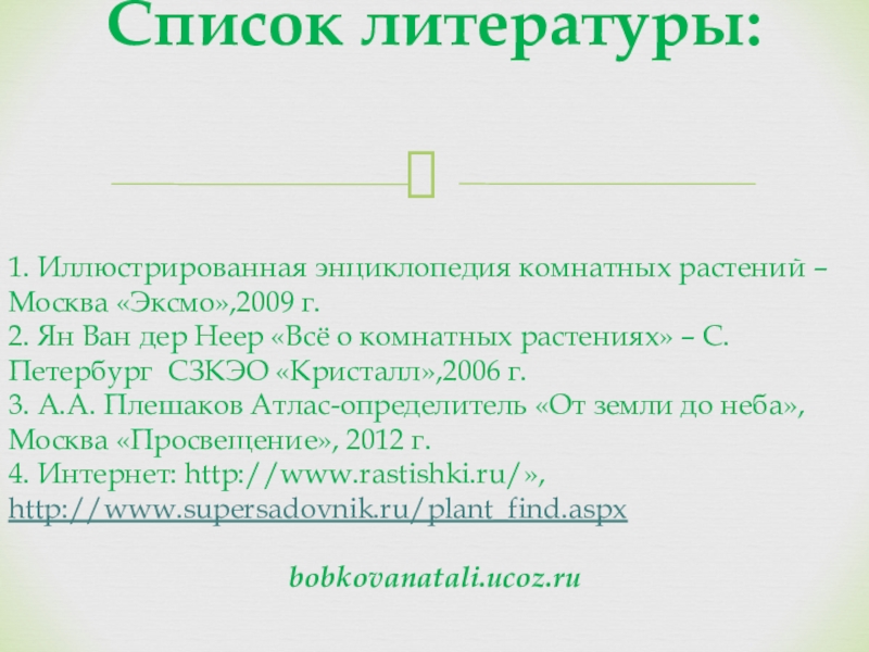 1. Иллюстрированная энциклопедия комнатных растений – Москва «Эксмо»,2009 г.