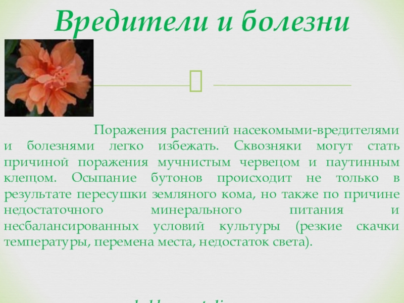 8. В слишком теплых комнатах гибискус легко поражается тлей.