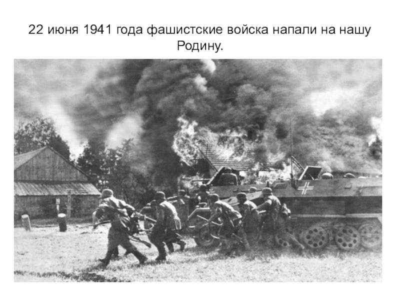 Слайд 222 июня 1941 года фашистские войска напали на нашу Родину.