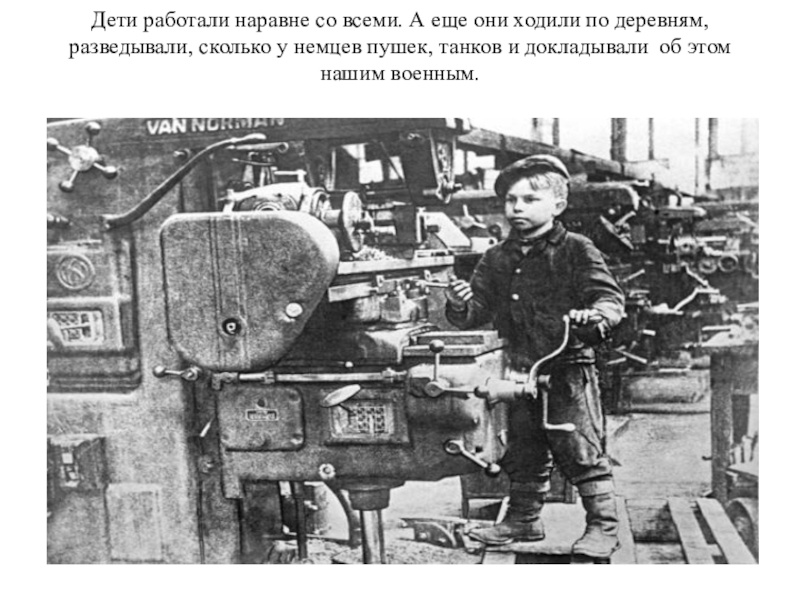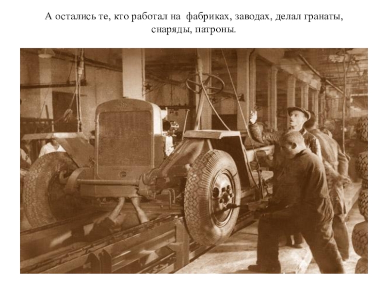 Слайд 6А остались те, кто работал на фабриках, заводах, делал гранаты, снаряды,