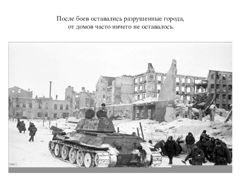 Слайд 12После боев оставались разрушенные города,  от домов часто ничего не оставалось.