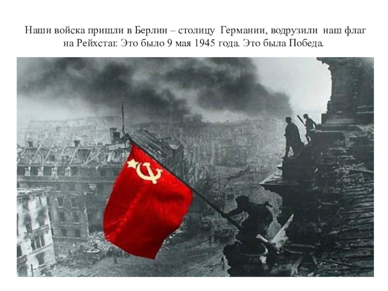 Слайд 16Наши войска пришли в Берлин – столицу Германии, водрузили наш флаг