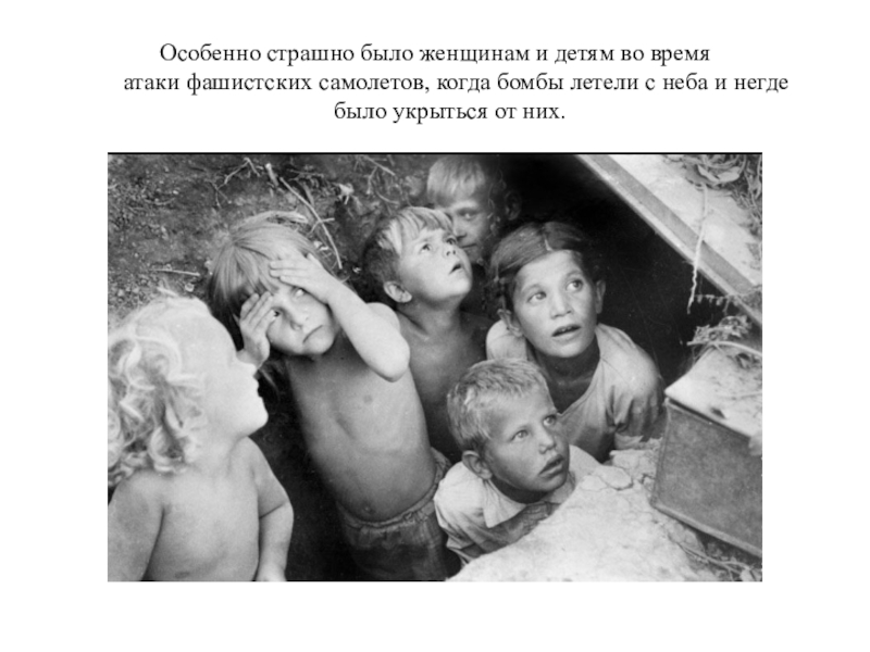 Слайд 14Особенно страшно было женщинам и детям во время