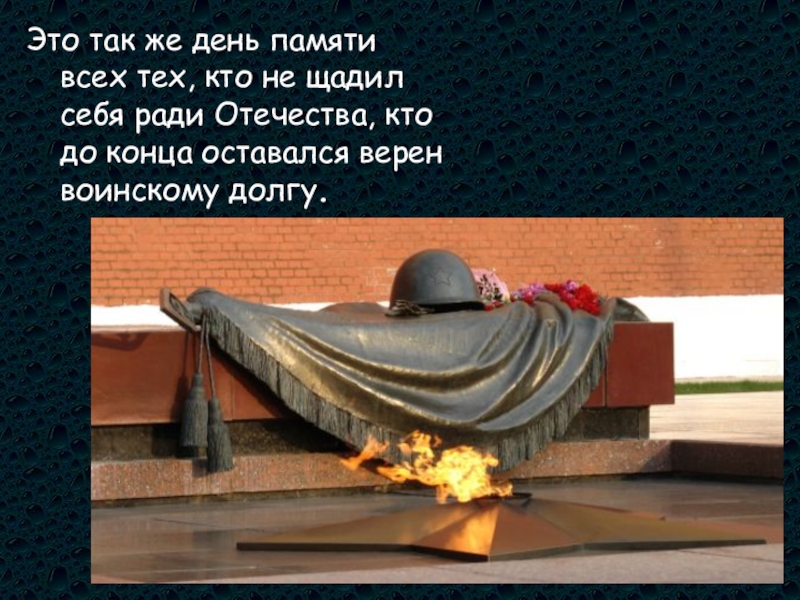Это так же день памяти всех тех, кто не щадил себя ради Отечества, кто до конца оставался