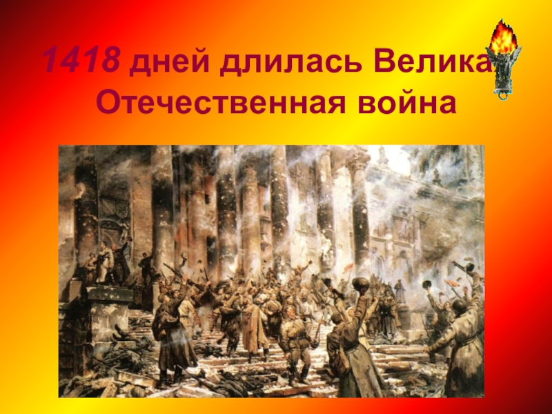 Слайд 141418 дней длилась Великая Отечественная война