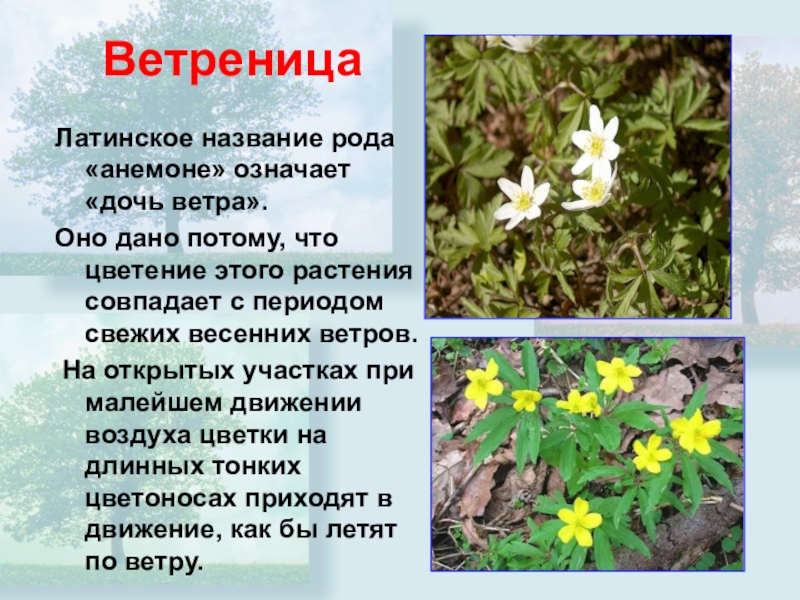 цветение этого растения совпадает с периодом свежих весенних ветров.