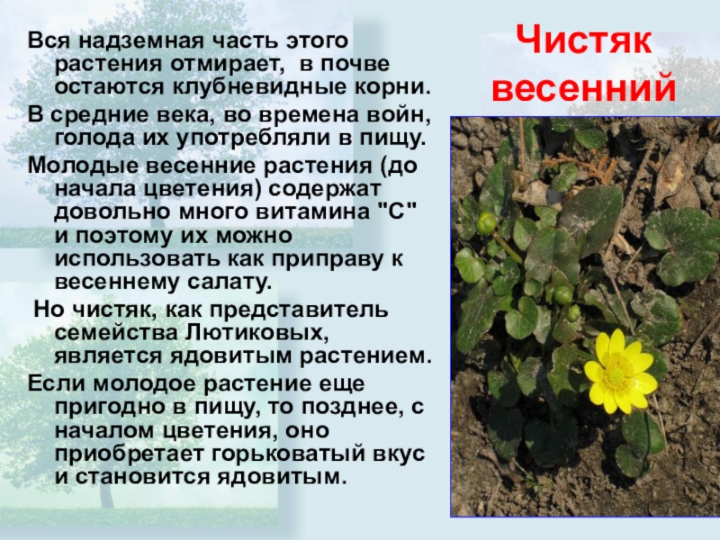 Но чистяк, как представитель семейства Лютиковых, является ядовитым растением.