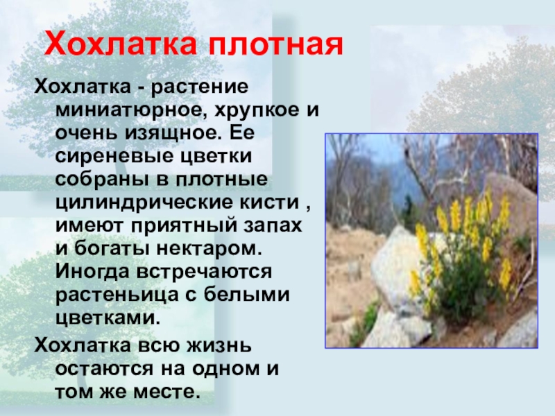 Хохлатка всю жизнь остаются на одном и том же месте.