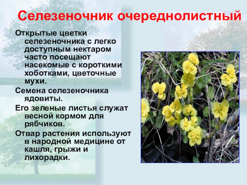 Открытые цветки селезеночника с легко доступным нектаром часто посещают